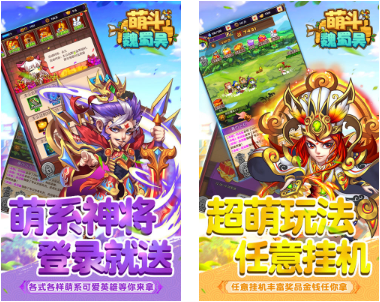 萌斗魏蜀吴超V版萌神武将,可御可萝可帅炸!看我霸权天下,风流萌物尽收割,看我策乱山河,纷扰故事历几何,该游戏是一款萌系策略卡牌游戏,玩家可在其中扮演御军统帅,亲自招募各路俊才:练兵布阵点江山、过关斩将竞称雄!丰富的乱世任务、策略养成玩法,迷宫幻境探未知探宝藏、攻城略地抢元宝抢粮食,组建战队准备出击吧,萌动的三国为你萌动~